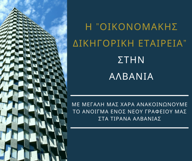 Το νέο γραφείο εξυπηρέτησης της «Οικονομάκης Δικηγορική Εταιρεία» στα Τίρανα Αλβανίας!